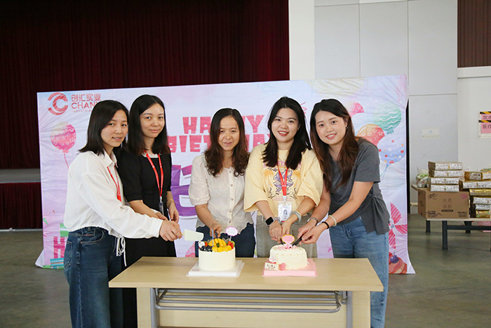随着生日歌缓缓响起,点缀着鲜果的定制蛋糕被推至中央,“3、2、1!生日快乐!”几个寿星代表一起切开蛋糕,甜香四溢间,是同事们真挚的祝福,更是公司对每一位员工的珍视。