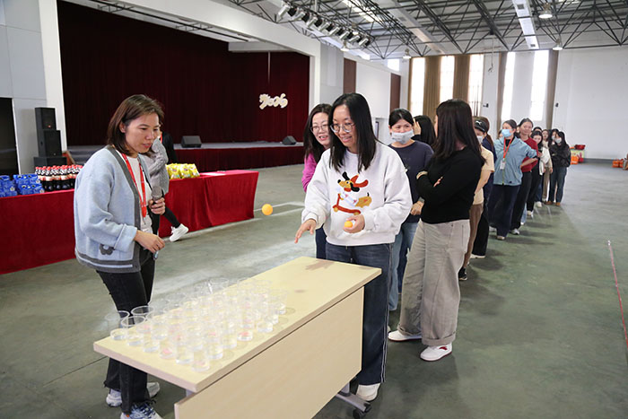 小小的乒乓球,承载着大大的幸运!女神们将乒乓球投入藏有奖品的杯子中即为胜利。这不仅需要精准的手法,更需要一点点“欧气”加持。“进了!进了!”每当有女神投中目标,现场便爆发出一阵欢呼。
