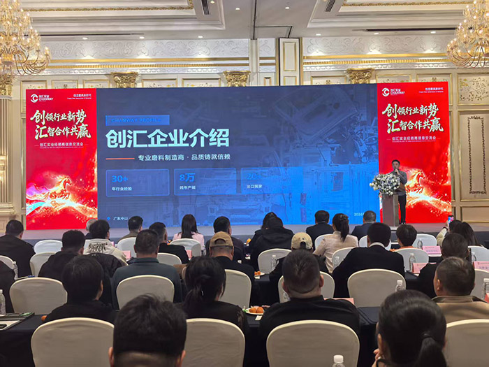 除展会的精彩展示外,创汇实业还隆重举办 “创领行业新势・汇智合作共赢”经销商信息交流会,与全国经销商伙伴欢聚一堂,共叙情谊、深化协作,分享市场动态、技术成果与战略规划,共绘2026年及未来发展蓝图。公司常务副总经理杨沛杰、国内营销部经理黎利思、技术研发部经理周正华与全国各地经销商出席本次会议。